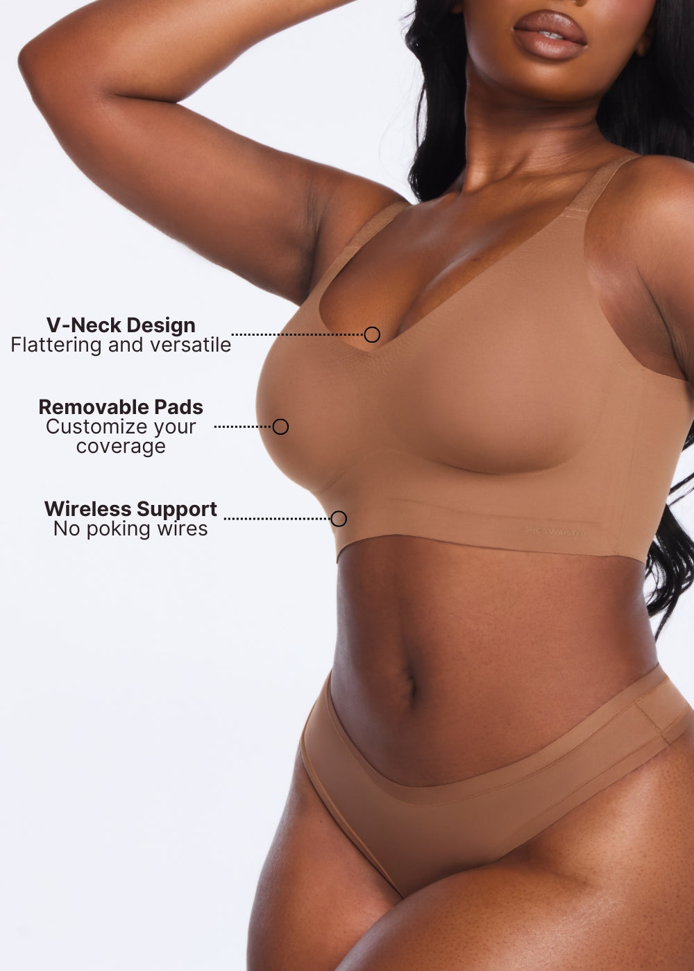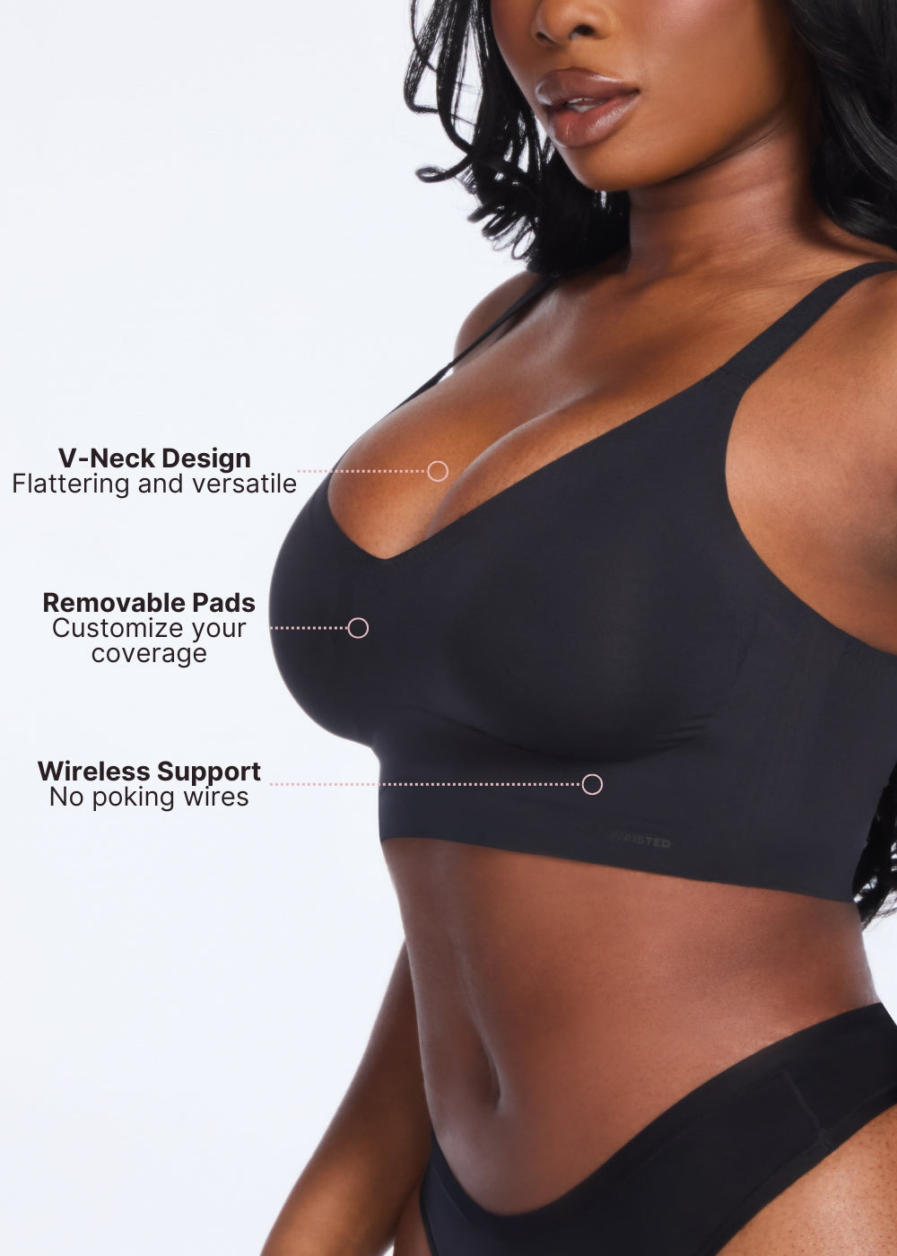 Tired of bras that dig, roll, or just don’t deliver? Meet the MagicEraser Wireless V-Neck Adjustable Bra, your ultimate solution for a flawless fit and a sleek silhouette. Designed to smooth, support, and stay in place, this is the bra you didn’t know you needed.