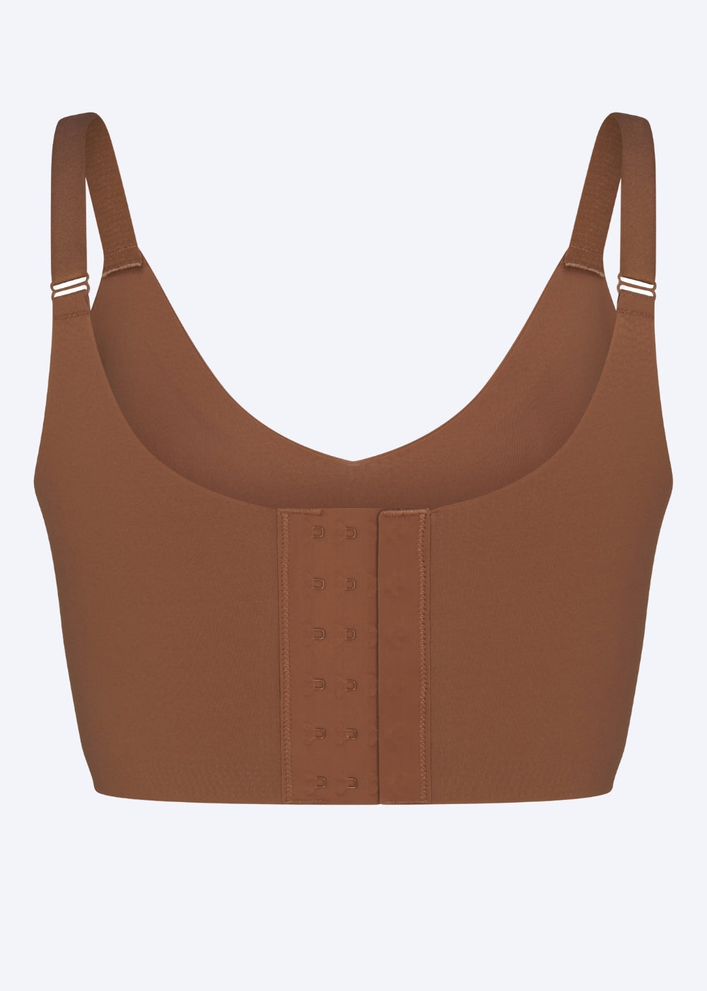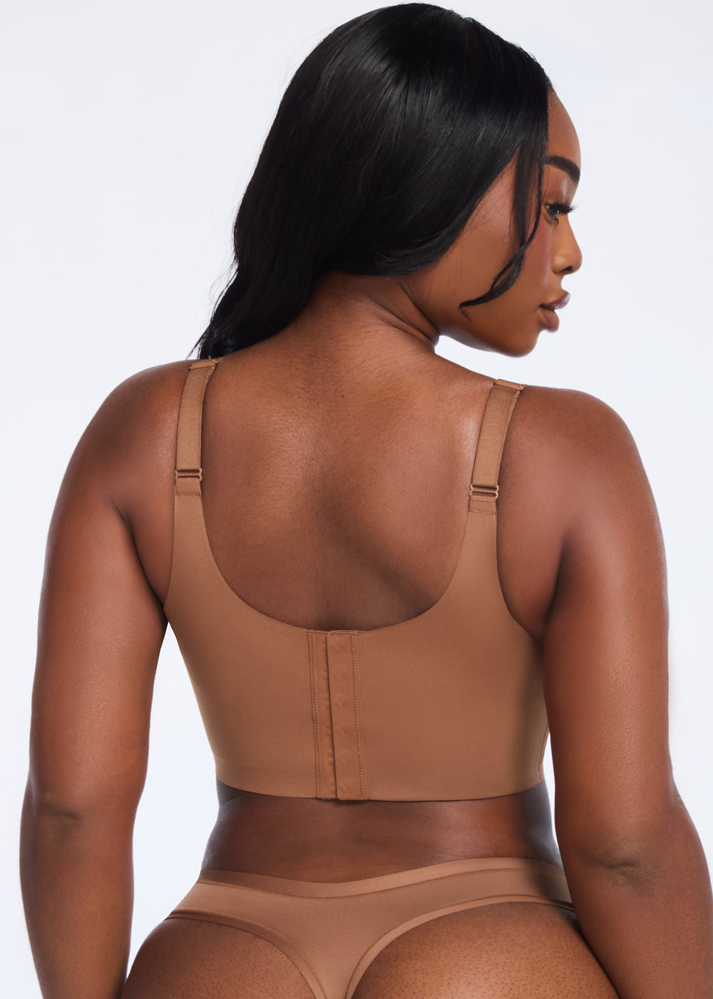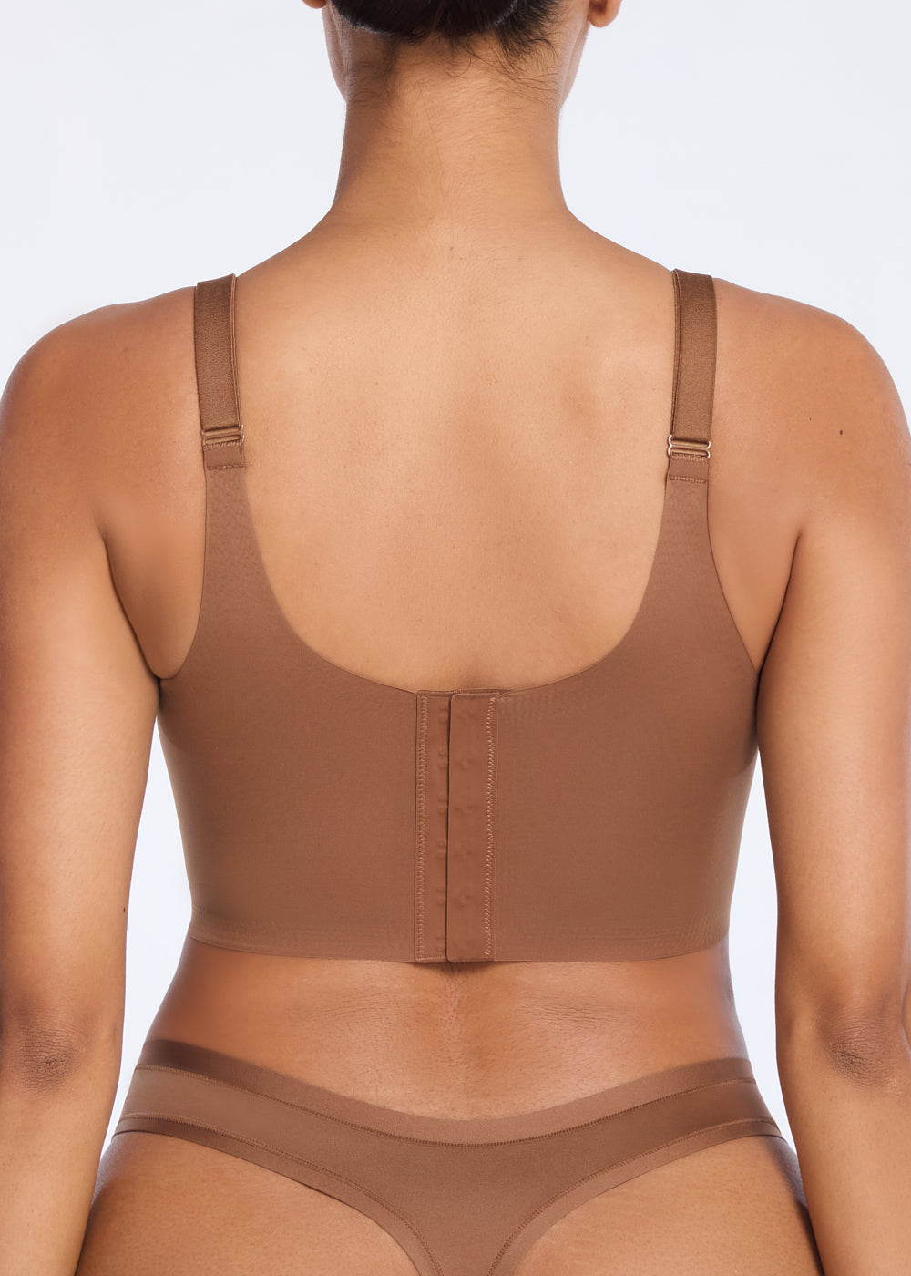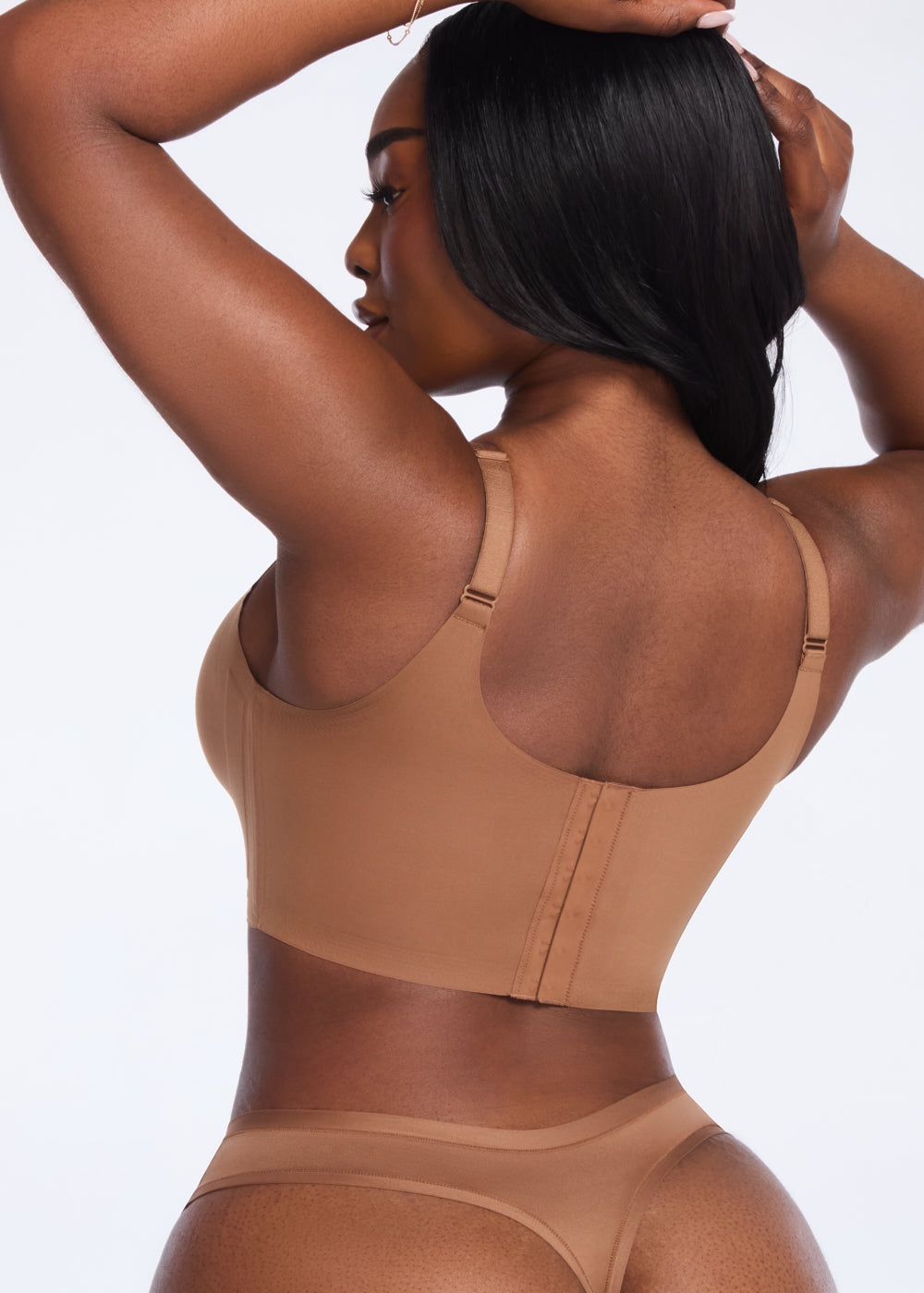 Crafted with a seamless, wire-free design and compression fabric that works its magic on back fat and armpit bulges, this bra ensures you look as good as you feel. Adjustable straps, removable pads, and a no-roll fit mean it’s made to move with you—every step, stretch, and busy day.