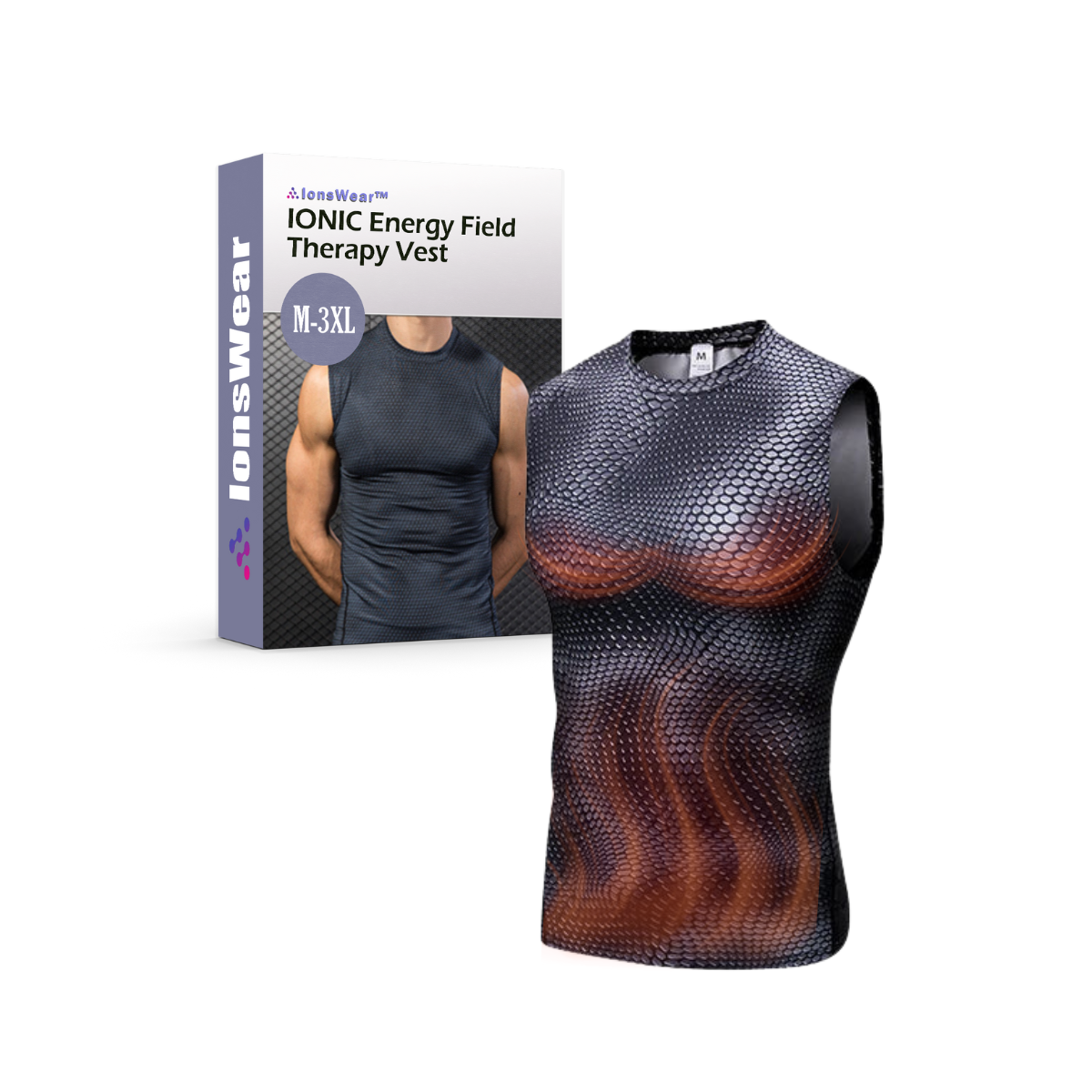 The IonsWear™ IONIC Energy Field Therapy Vest capacity to create negative ions is referred to as the textile's ionic function. Negative ions are produced when the cloth interacts with the skin's natural moisture when it comes into touch with the body. ION can increase blood flow, boost metabolism, and shrink fat cells.