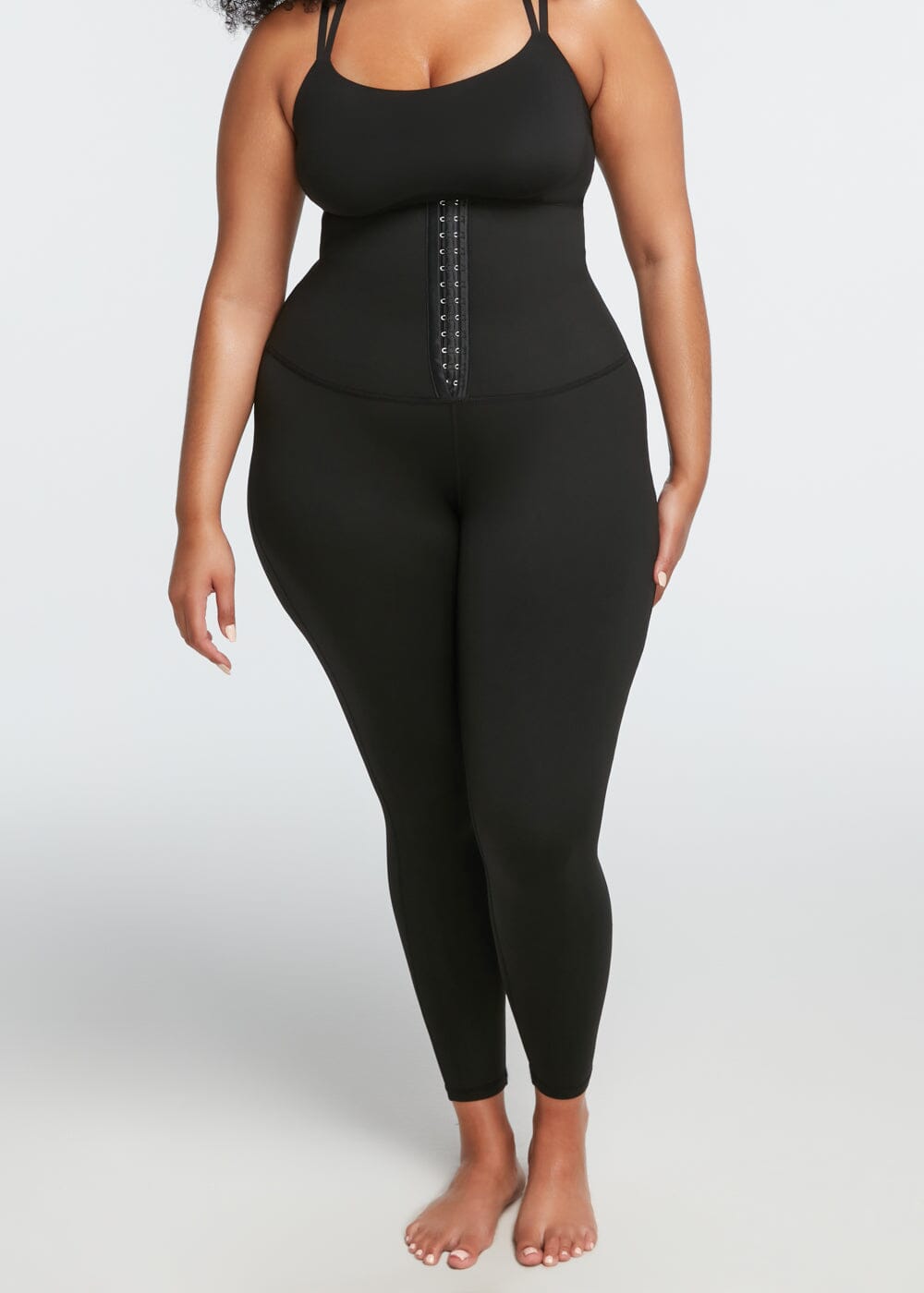 Sweat it out with our Thermal sauna leggings. Designed with a thermal-tech fabric in the waist and tummy, these leggings are designed to stimulate sweating. Their high-waist design features three rows of hooks to provide the perfect contour and compression. The legs feature a breathable fabric that is moisture wicking.